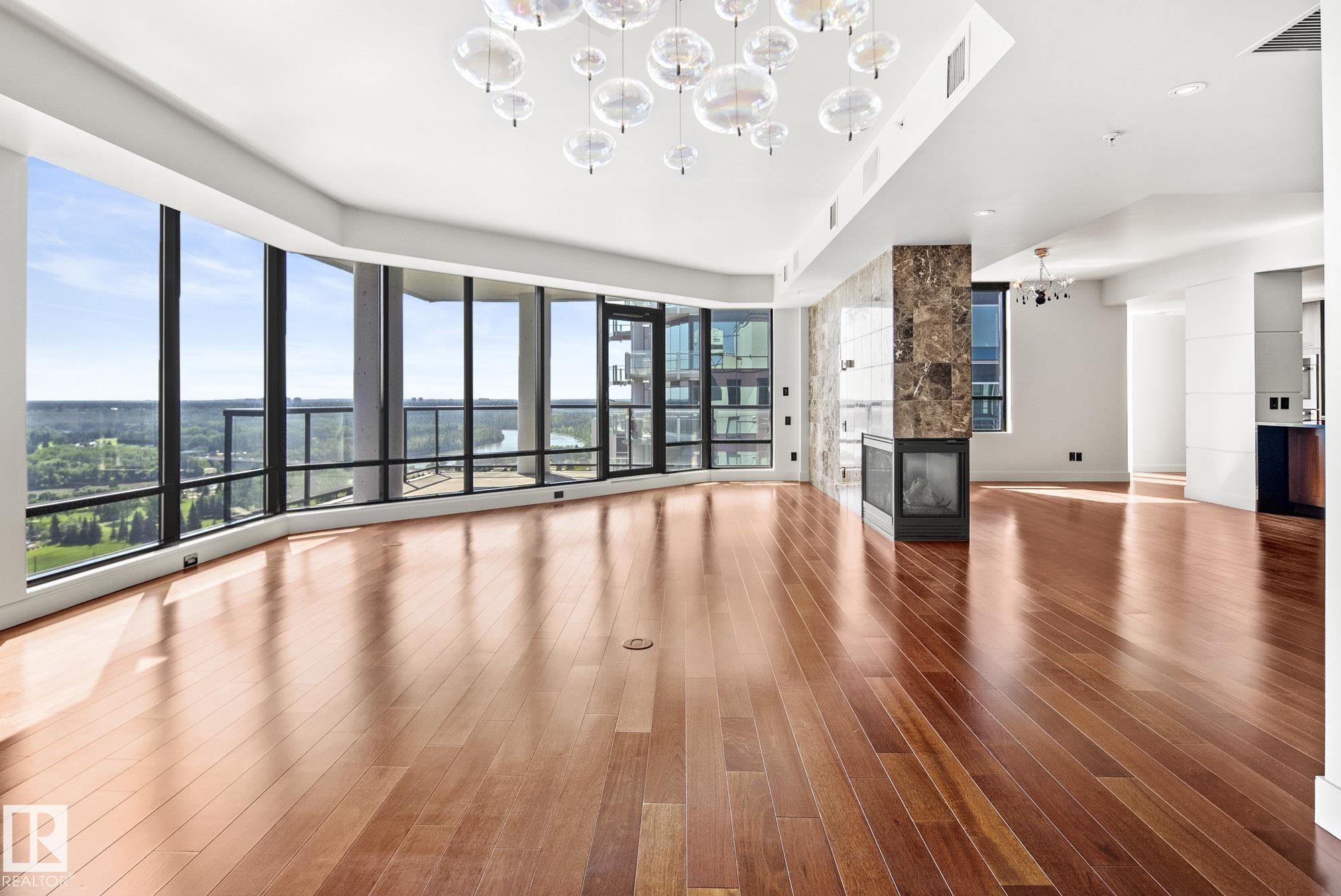 Elevate your lifestyle in Edmonton's Illuminada II penthouse, occupying the entire top floor with stunning views where the eye skips delighted over the verdant expanse of the Edmonton River Valley. This glamorous residence offers unparalleled scale and style. Accessed by exclusive elevators, the private entrance foyer opens into a magnificent living room, complemented by stunning vistas from ever angle. Currently configured with 4 bedrooms, the flexible floor plan invites endless possibilities. Enjoy entert...