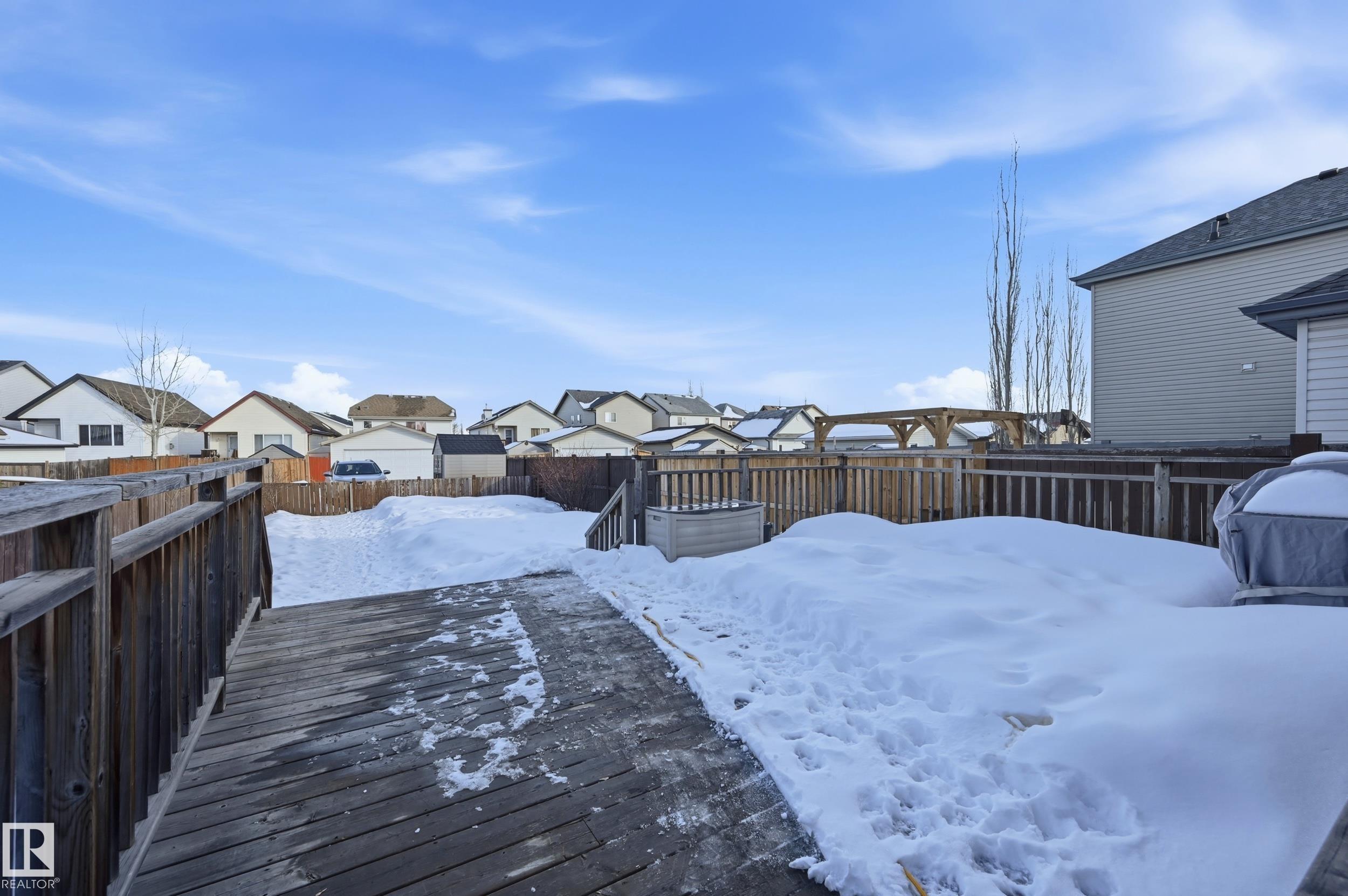 Perfect starter home!This well maintained home features an open concept main floor with rich walnut laminate flooring throughout.The kitchen offers ample cabinetry and a large centre island.The dining area overlooks the fenced backyard and deck while the spacious living room features a cozy gas fireplace with TV niche above.Upstairs you’ll find 3 bedrooms including a primary suite with walk in closet plus a main bathroom with tile flooring and relaxing soaker tub.The basement provides excellent storage with...