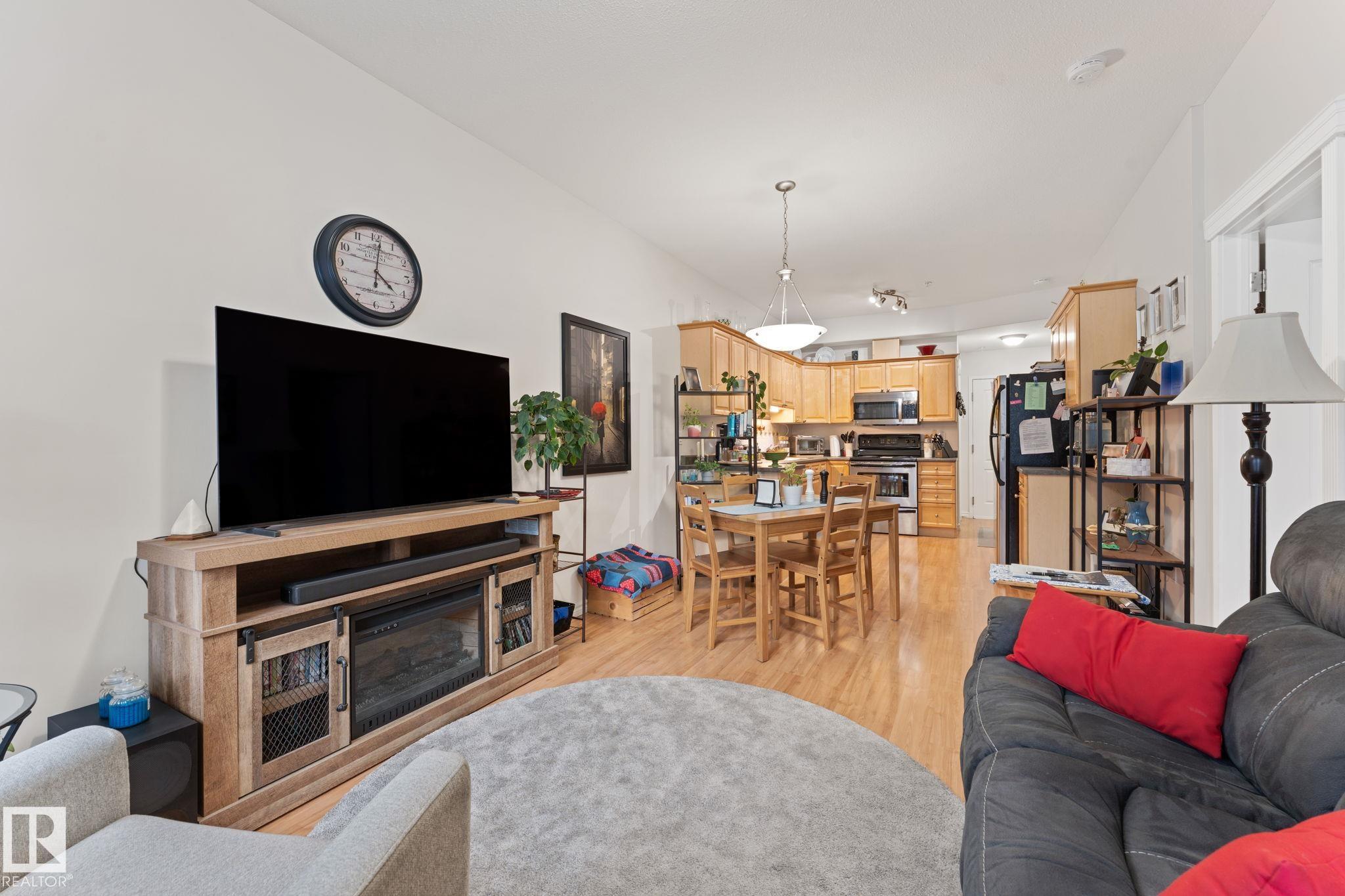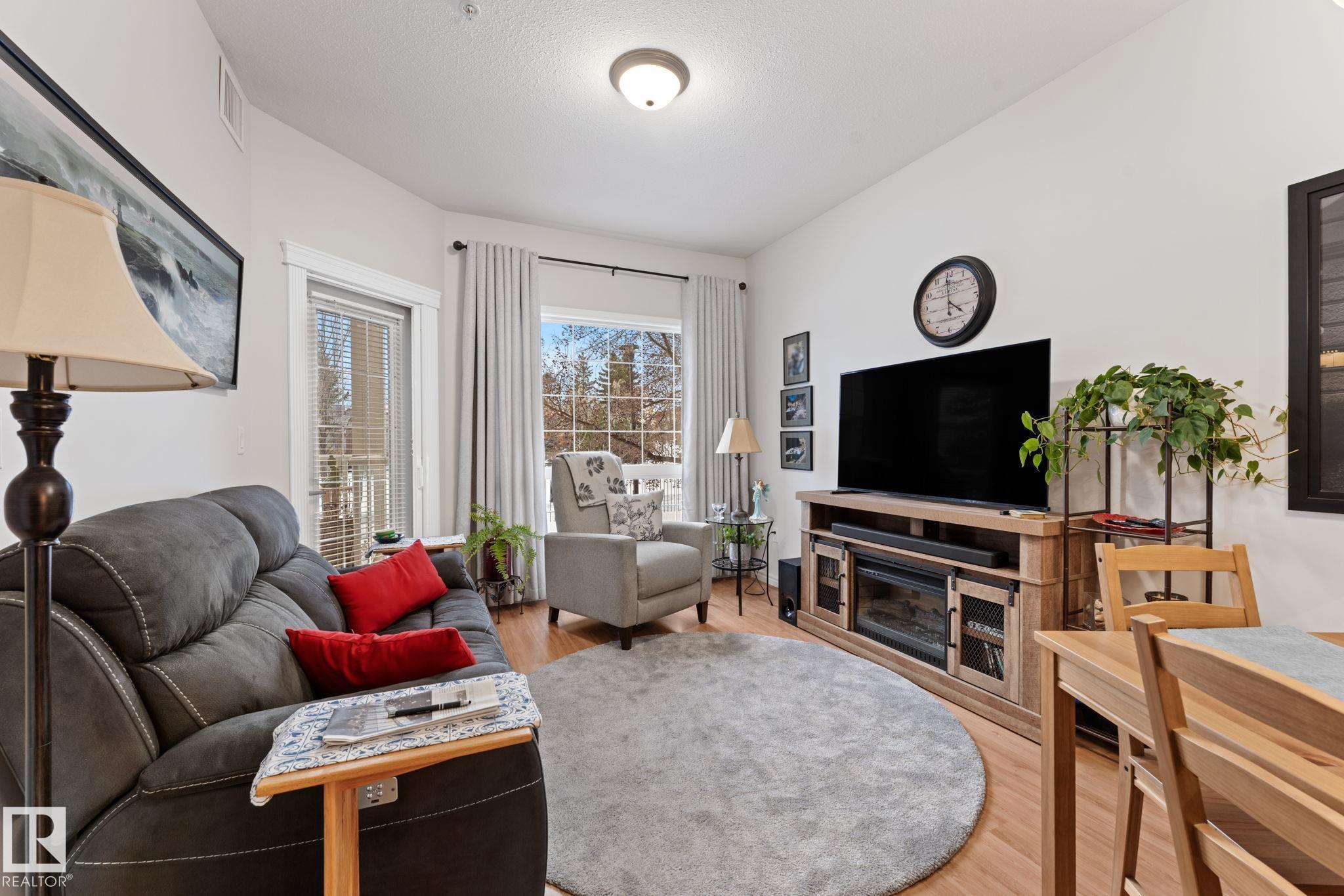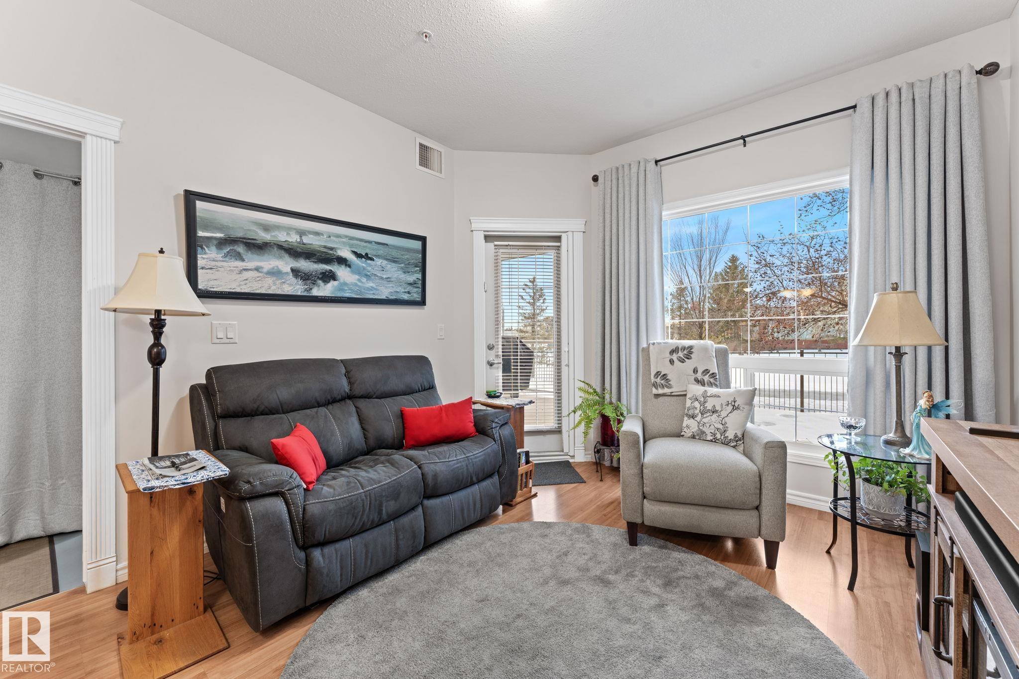 Welcome to 55+ urban serenity in the heart of Mill Woods. With 9 ft CEILINGS this beautifully maintained 2 bedroom, 2 full bathroom main floor condo is the perfect blend of comfort, convenience, and lifestyle. The open layout is both warm and functional with lots of natural light that features fresh paint, brand new carpet in primary bedroom, laminate flooring, stainless steal appliances, timeless oak-coloured cabinetry and heat pump AIR CONDITIONING. A true highlight is the peaceful location with a balcon...