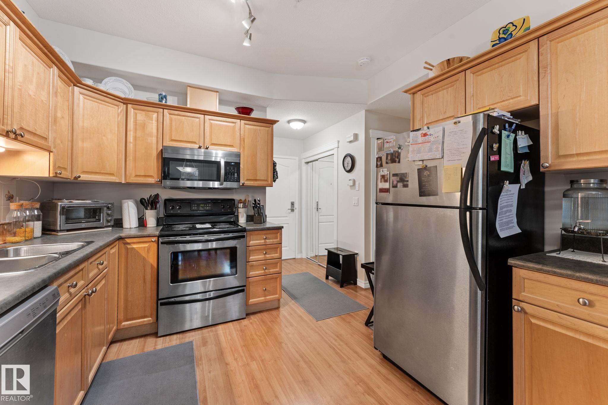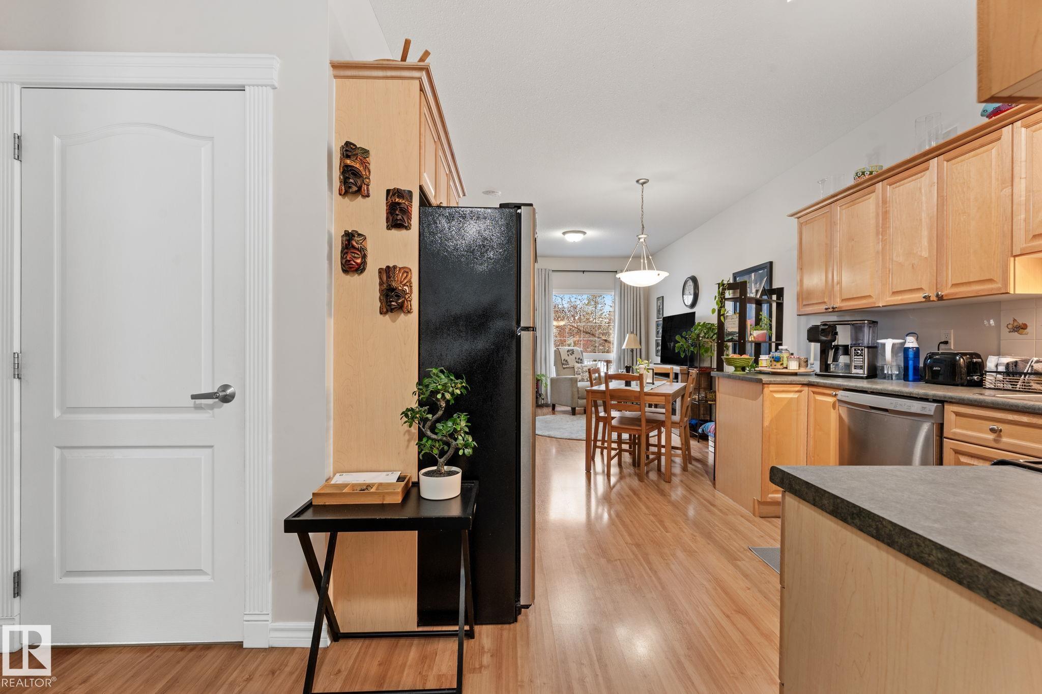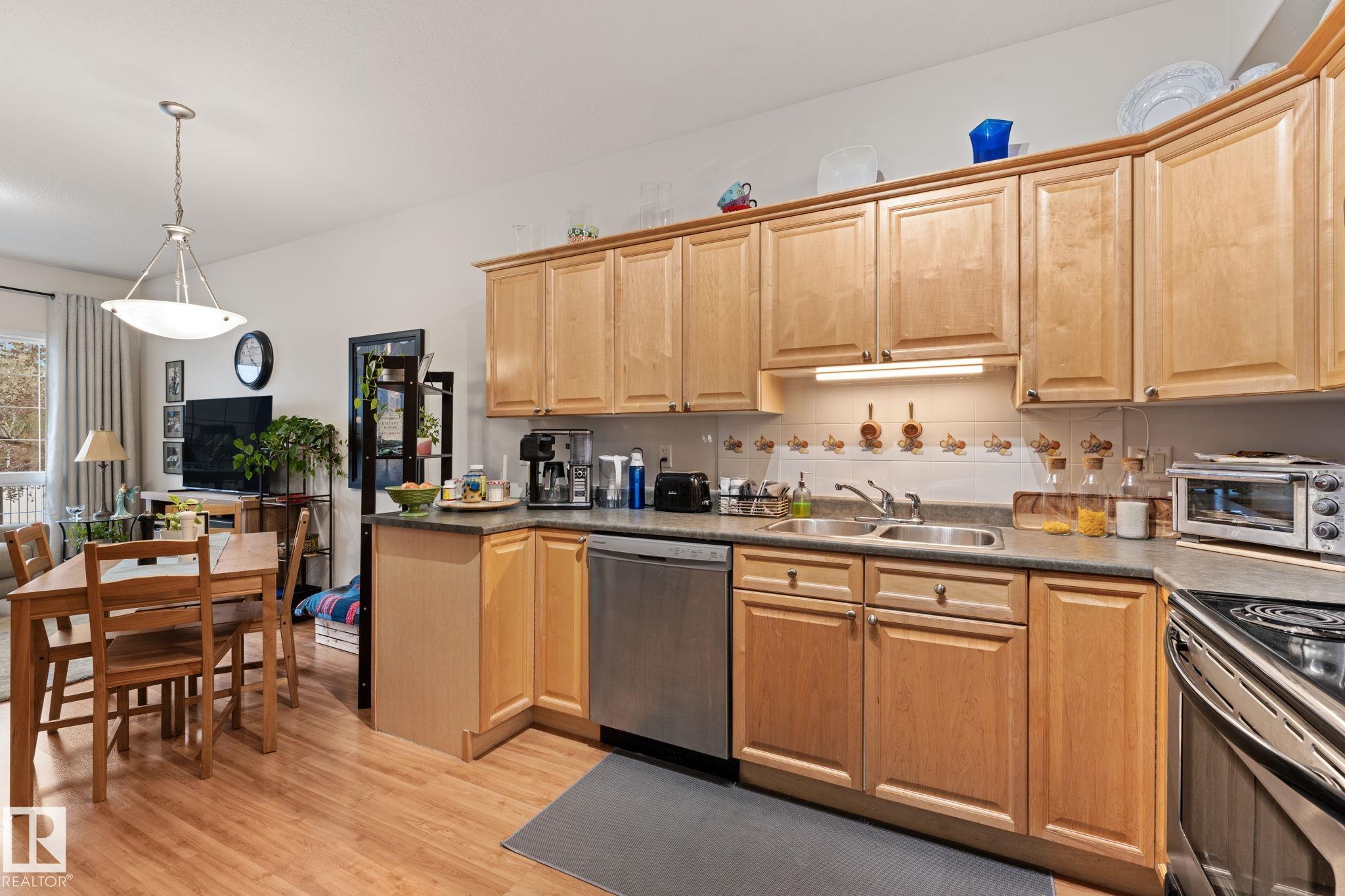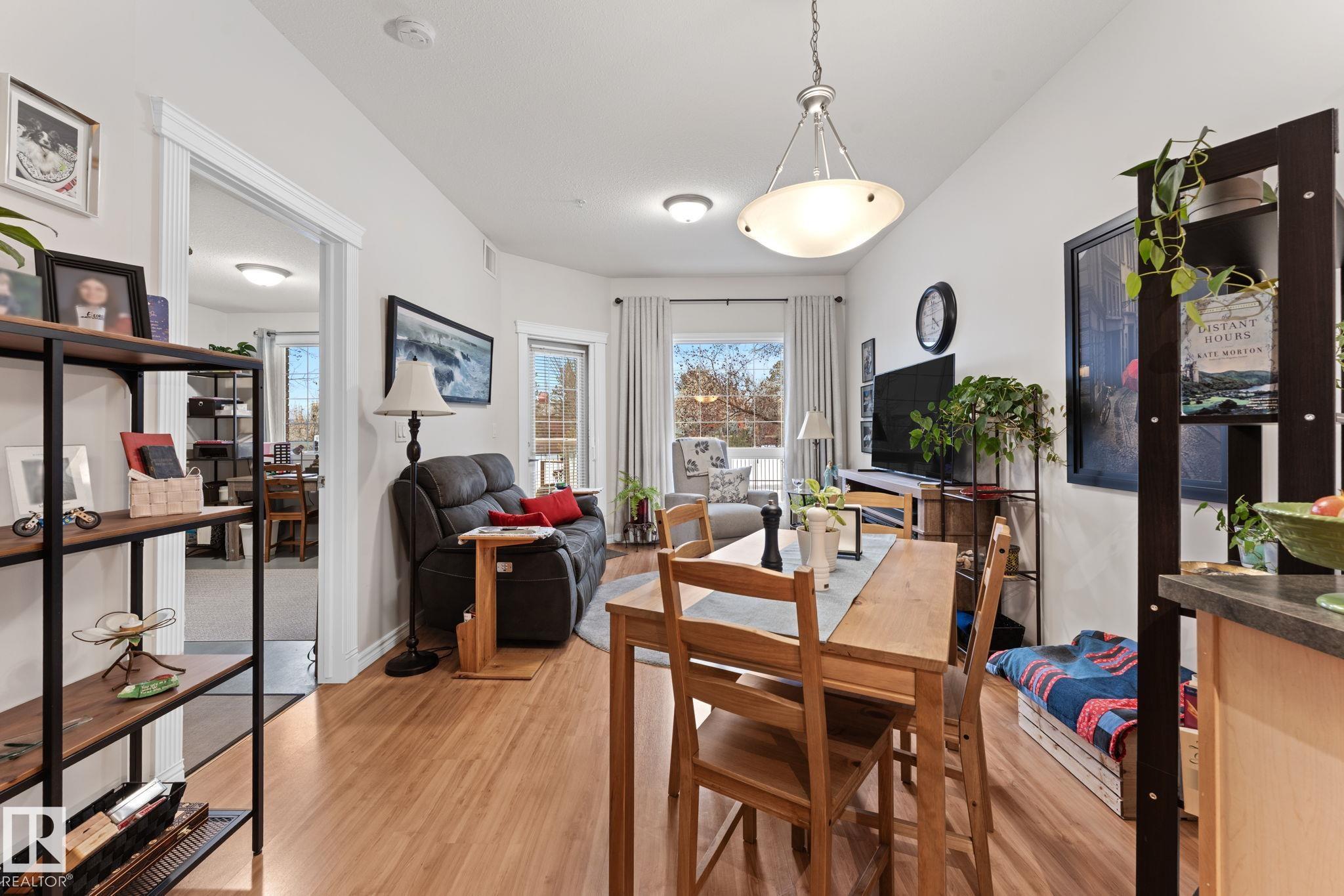 Welcome to 55+ urban serenity in the heart of Mill Woods. With 9 ft CEILINGS this beautifully maintained 2 bedroom, 2 full bathroom main floor condo is the perfect blend of comfort, convenience, and lifestyle. The open layout is both warm and functional with lots of natural light that features fresh paint, brand new carpet in primary bedroom, laminate flooring, stainless steal appliances, timeless oak-coloured cabinetry and heat pump AIR CONDITIONING. A true highlight is the peaceful location with a balcon...