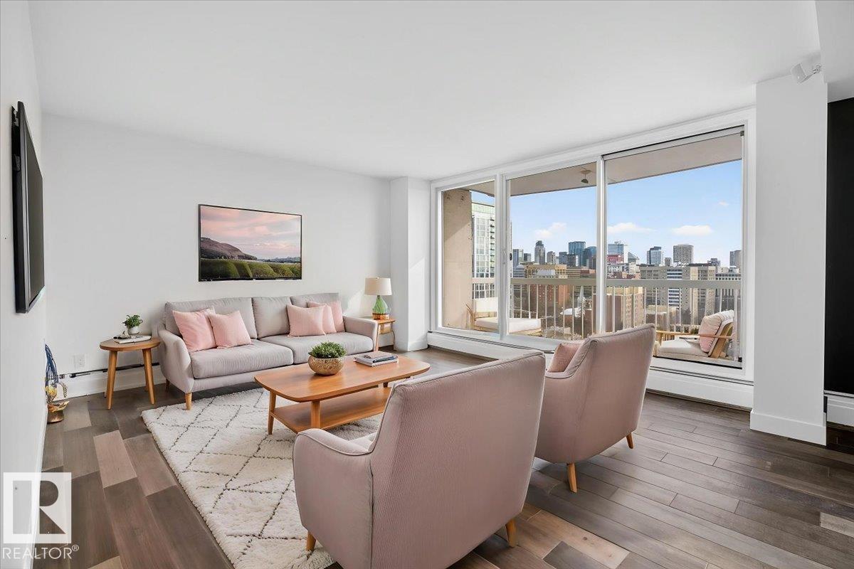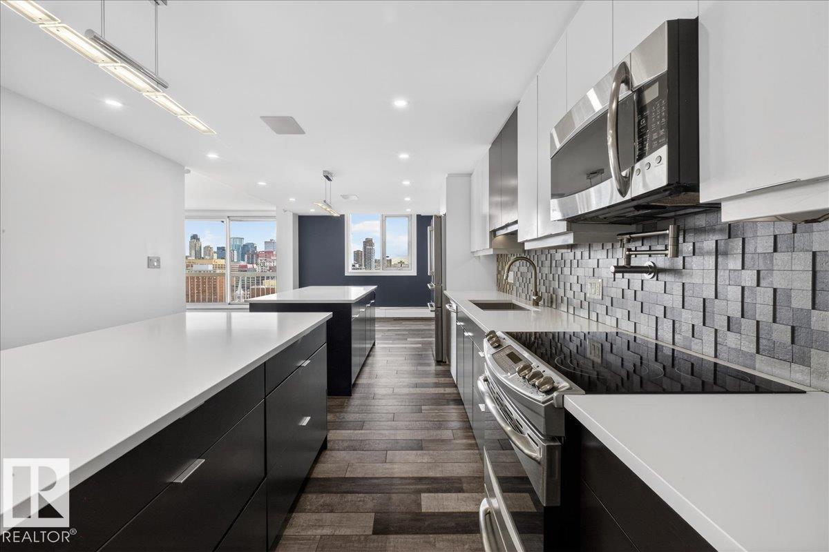 Experience elevated living in this stunning executive penthouse, where luxury meets lifestyle. Ideally located just steps from Edmonton’s river valley, this residence offers the perfect balance of nature and urban convenience. Enjoy two private balconies showcasing spectacular views of the river valley and the downtown skyline. The gourmet kitchen is designed to impress, featuring expansive quartz countertops, abundant cabinetry, a pot filler, bar fridge, and wine cooler, perfect for both everyday living a...