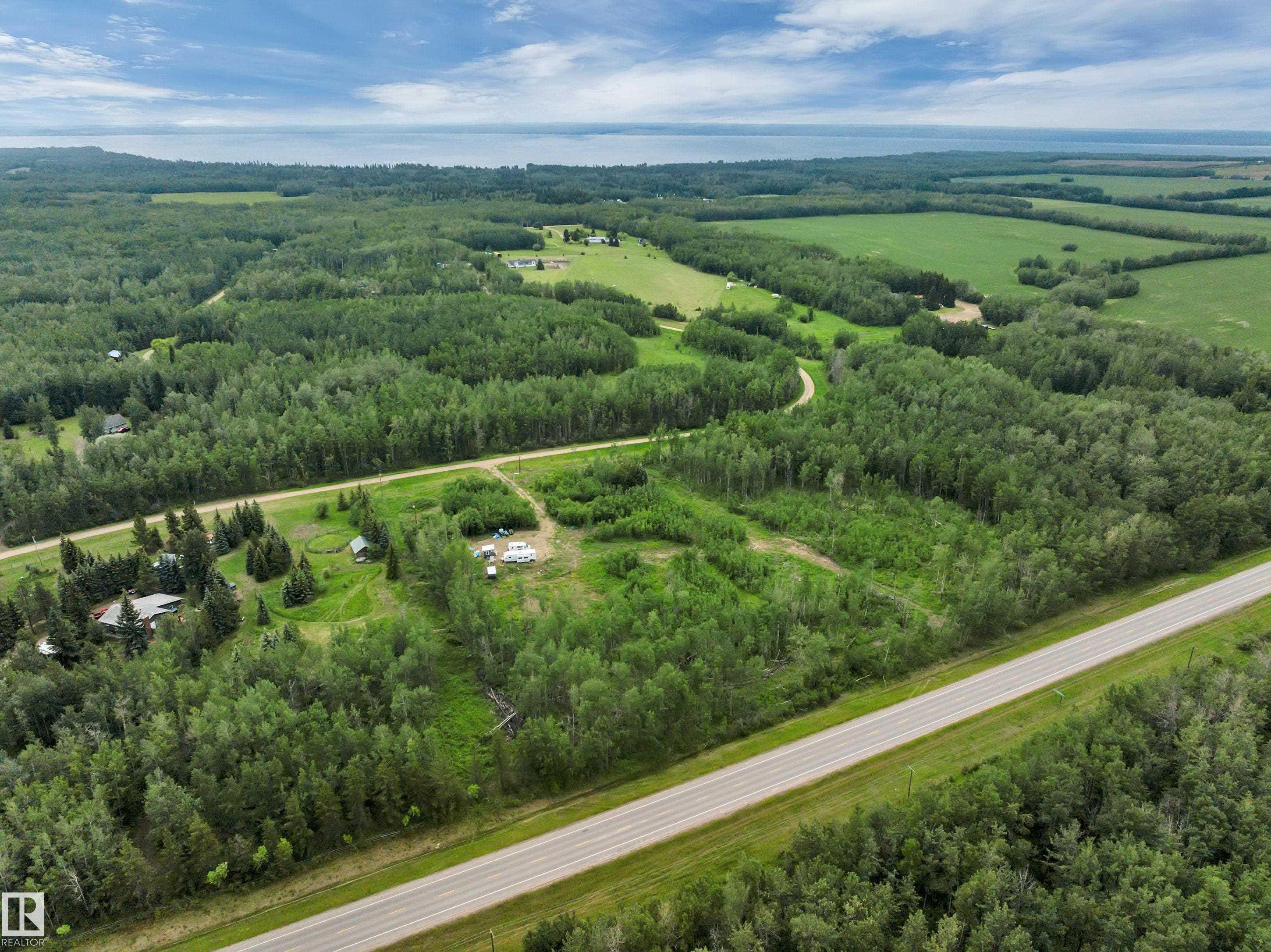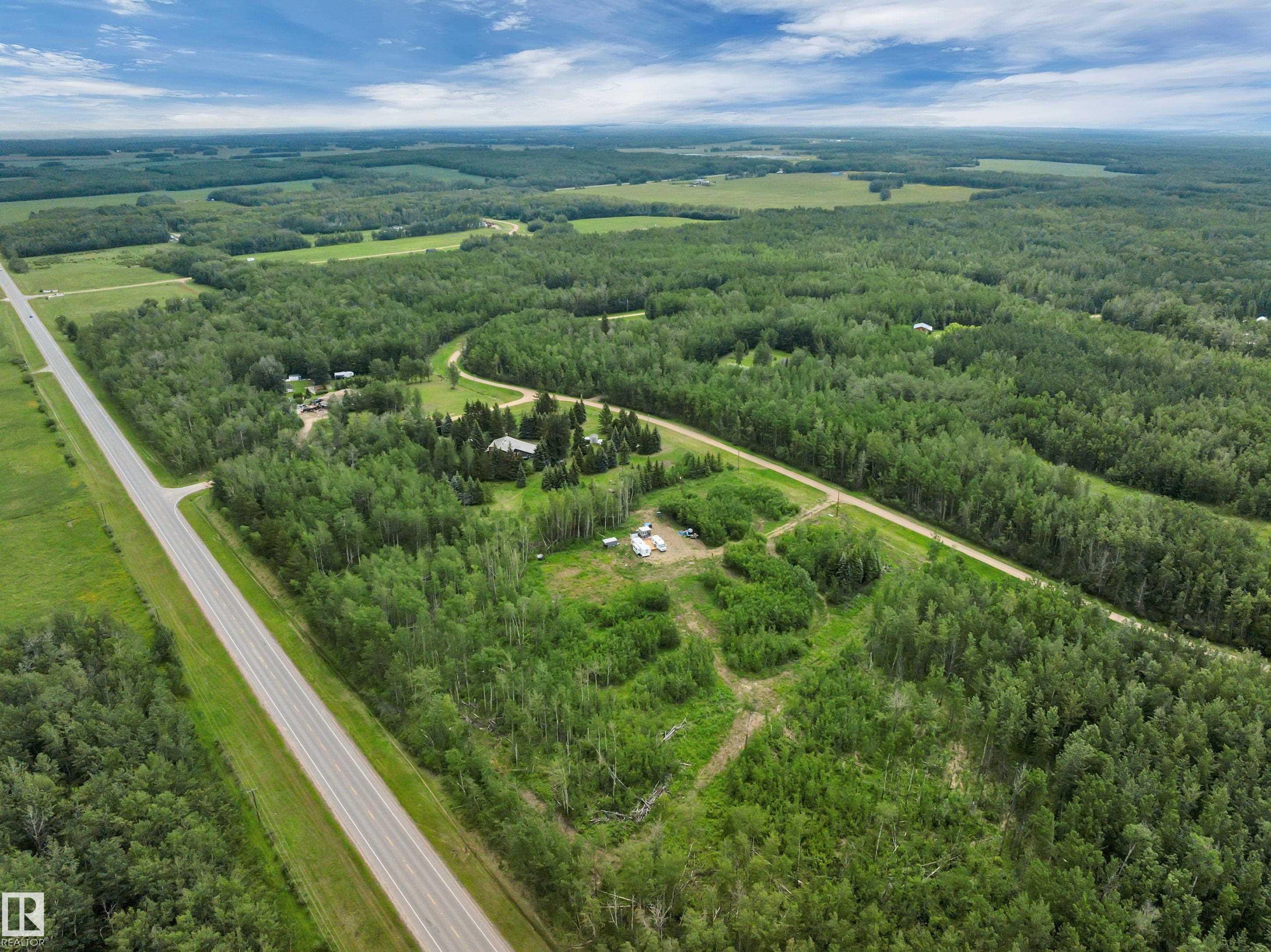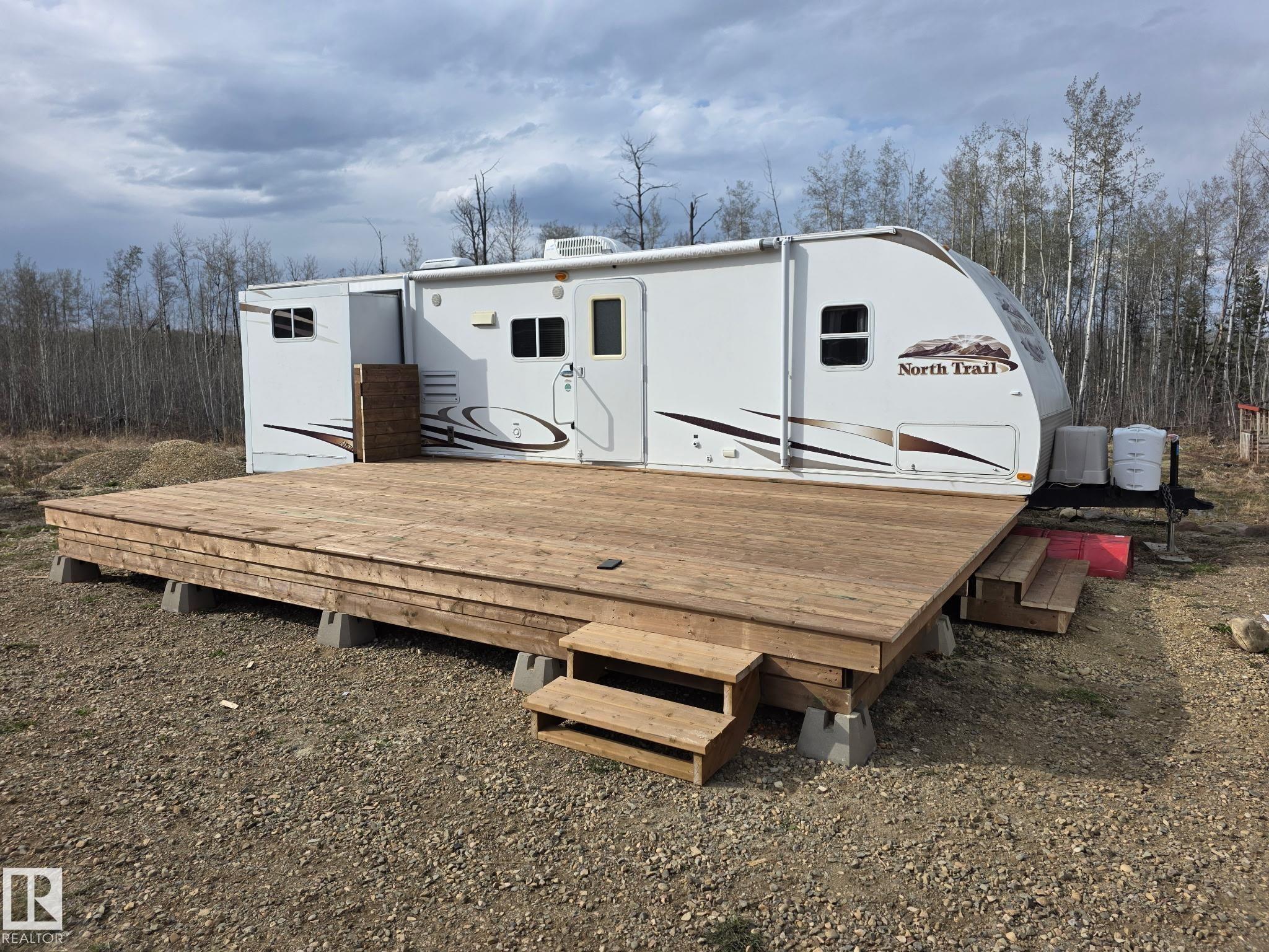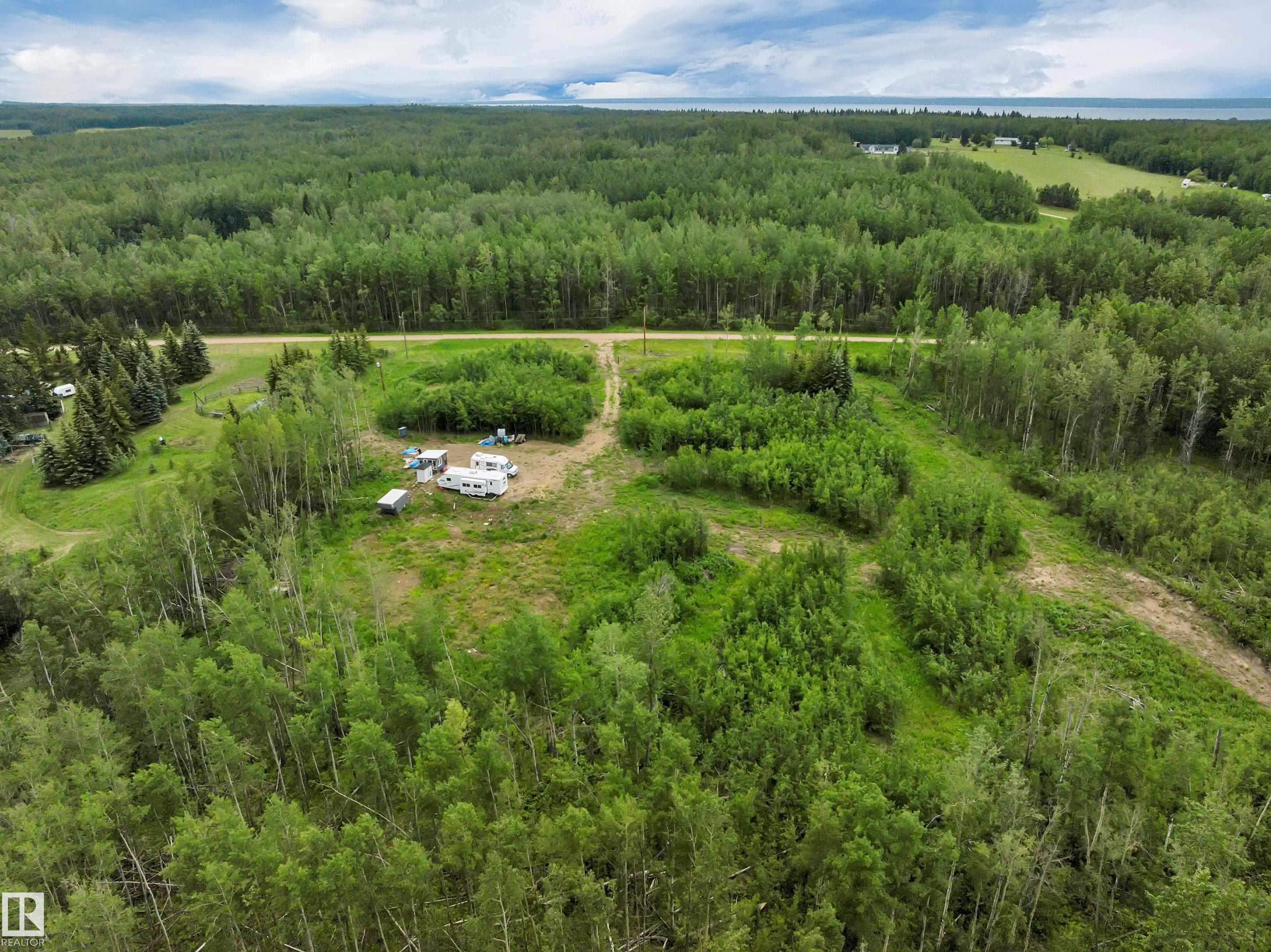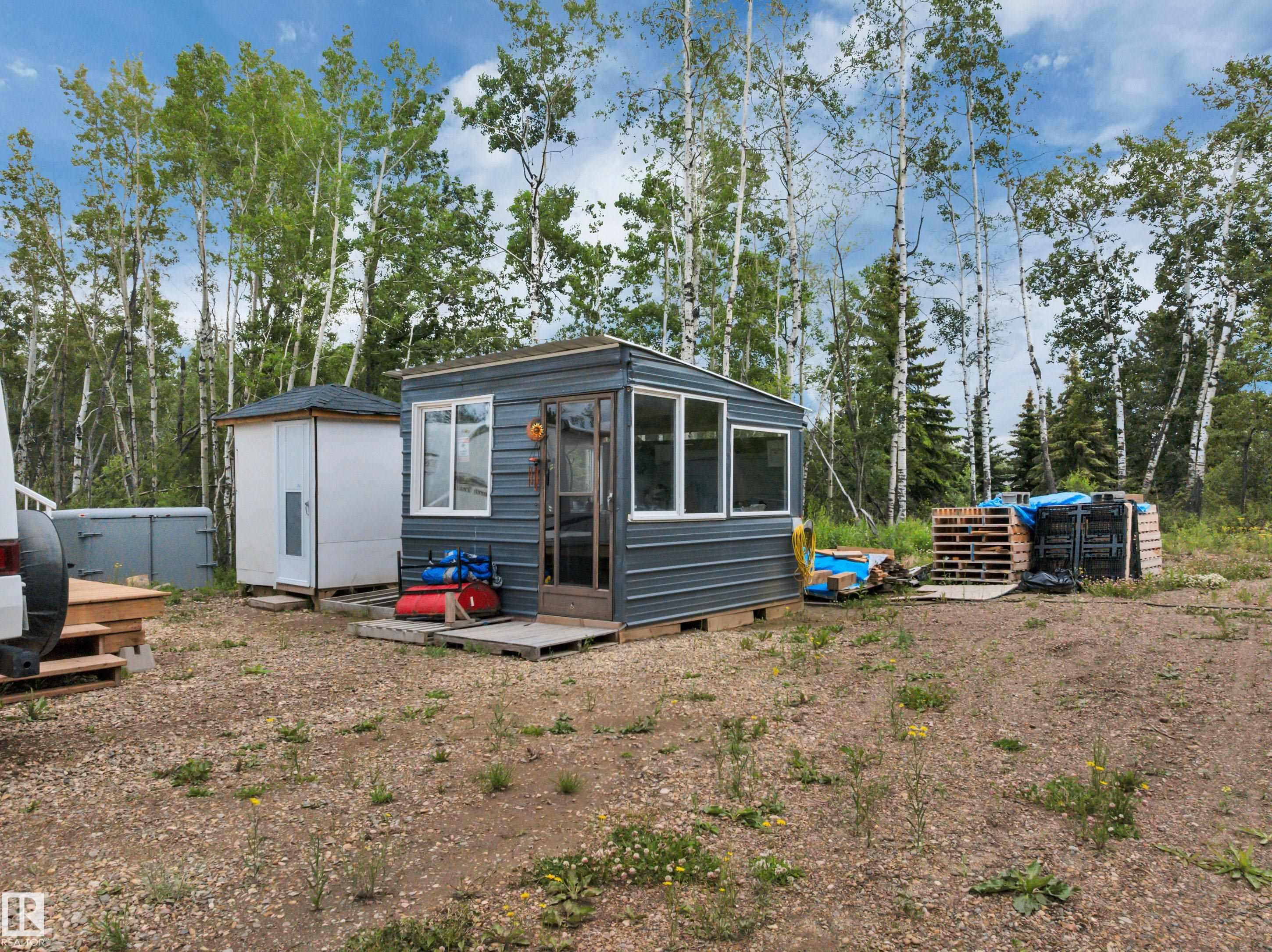 4.34 acres of lovely property close to all amenities at Mulhurst Bay, less than 2 km to Pigeon Lake which boasts a public boat launch, swimming area, community park and local golf course. Some trees have been cleared and a gravel driveway and gravel pad is done, ready for building. Septic holding tank is in (1,250 gallons), drilled well and Under ground Power in the property! , the whole property is fenced, there is a contained outdoor kitchen and bathroom with seasonal running water and sewer ready for us...