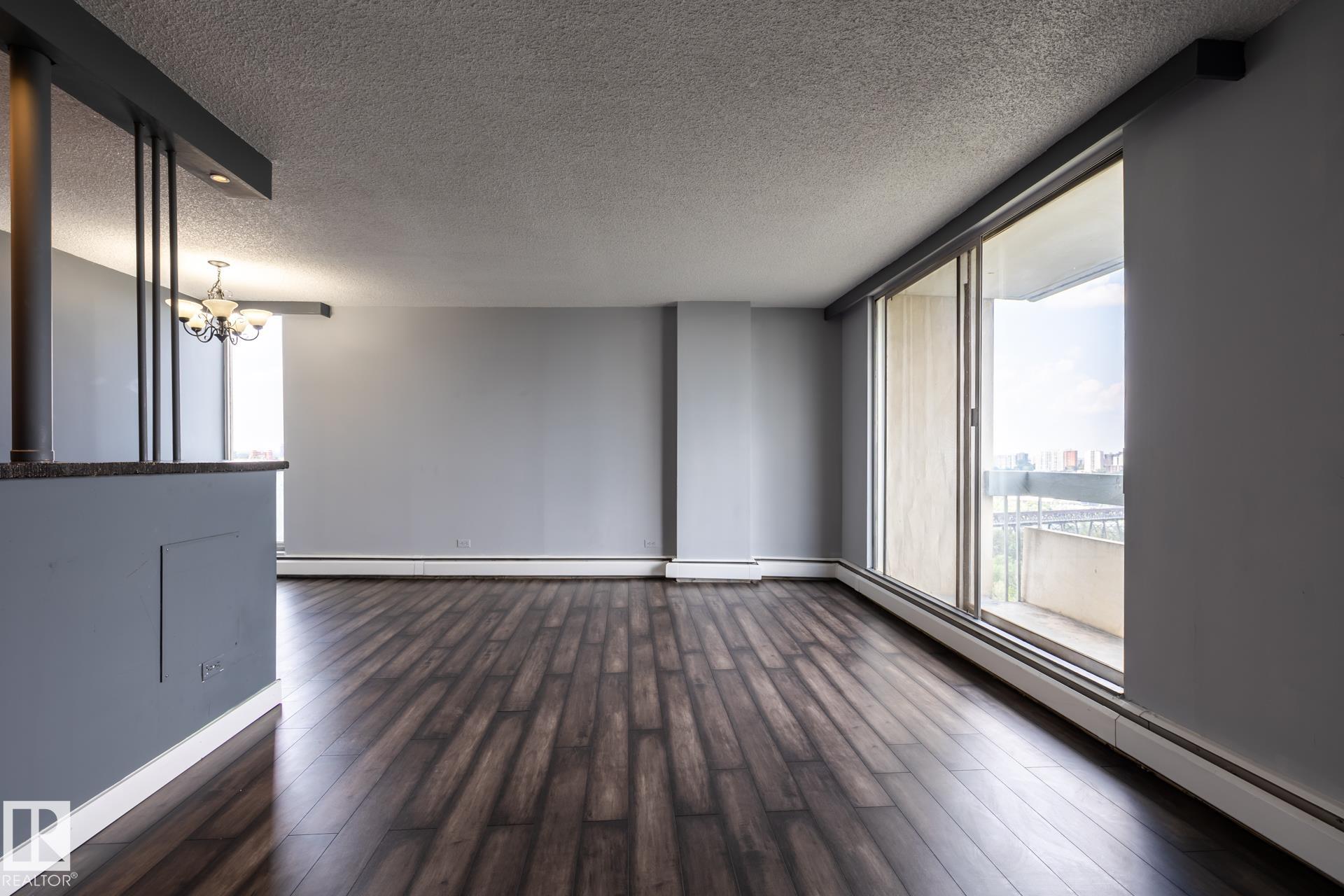 Excellent & best buy hi-rise condo on prestigious Saskatchewan Drive. This fabulous one bedroom corner unit features a stunning open floor plan with a spectacular & unobstructed panoramic view of city skyline, river valley and the beautiful night view of Downtown. Bright and spacious layout with nice sized rooms, open kitchen w/painted maple cabinetry, island w/raised eating bar & stainless steel appliances. Upgraded laminated & tiled floorings, an oversized balcony perfect for outdoor enjoyments. Walk to t...